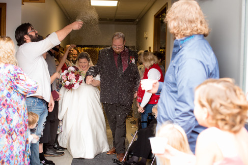 The ceremony was lovely and the couple shared their first kiss as man and wife. From there they left under the spray of snow. Snow that stayed with them I believe long after the wedding day and possibly into the honeymoon. Guests had fun and made sure to cover them with lots and lots of snow as Amanda and Andy made their grand exit from the ceremony.