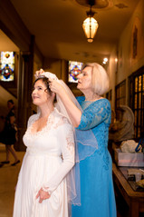 The bride's mother-in-law came into the church with the veil. Another thing to note, the bride is wearing, her mother-in-law's wedding dress from 1984. Because of this "happy mistake," Aaron's Mom was able to place the veil on Stephanie's head and they shared a special moment that was not planned, or expected, but truly wonderful to see.
